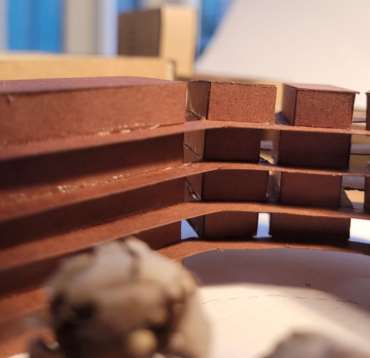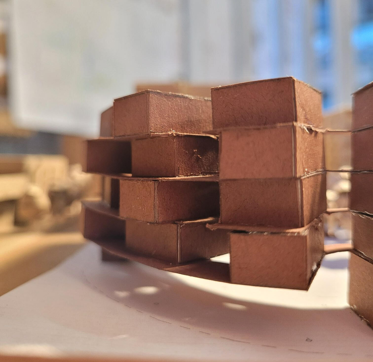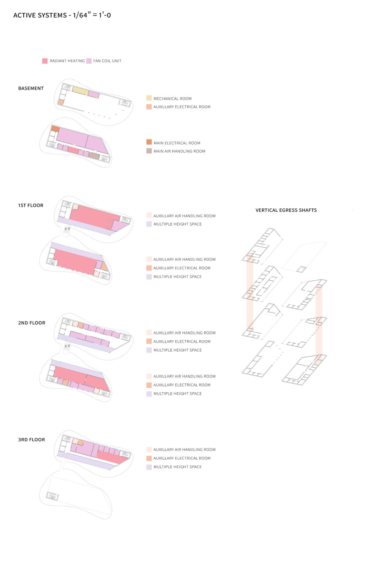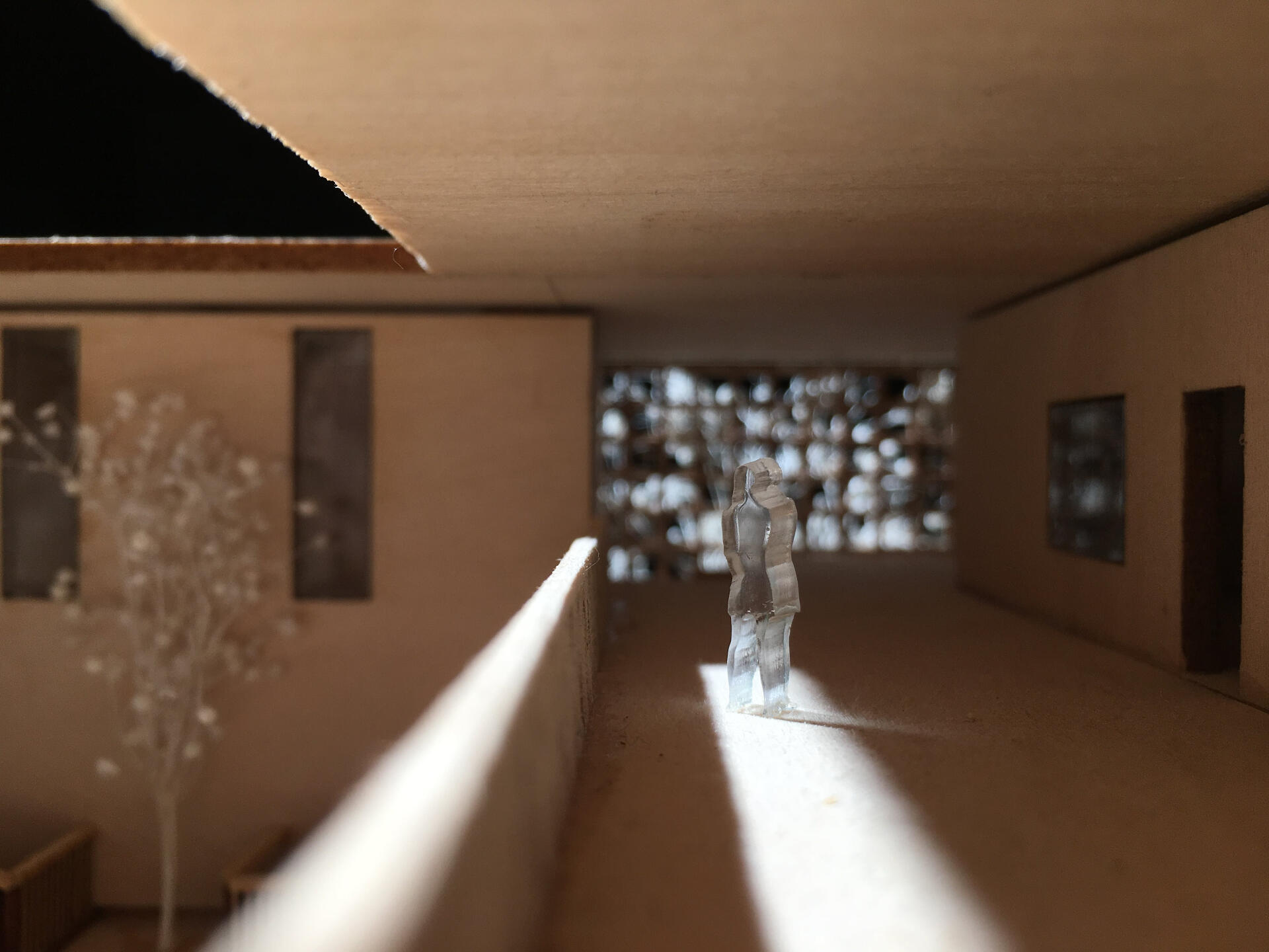 This project was mainly concerned with the design of an affordable housing complex in Tucson's Old Barrio district. The building takes the shape of an inverted L - the long side consists of double height studio apartments, and the short side is split between communal living space and one-bedroom apartments. The remainder of the site is allocated towards an outdoor courtyard, with the shared spaces being able to open up towards it.